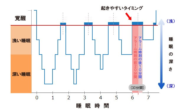 在休眠模式的“智能警报”功能中,将在身体的清醒状态下激活警报功能。因此,不会因为深度睡眠发出很大的声音而被吵醒,从容易醒的状态能轻松的起床。