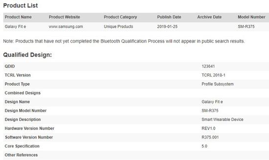 其中,SM-R170认证信息清楚地显示了“Galaxy Buds”这一名称,还标出了这款设备的身份是耳机,支持蓝牙5.0;SM-R370、SM-R375的认证消息显示,其名叫“Galaxy Fit e”,可能会是一款智能手环。