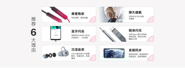 荣耀xSport Pro采用渐变设计,以红色、灰色和紫色为主配色,潮流范十足;内置高效能锂电池,配合低功耗蓝牙芯片,可以连续听歌18个小时,快充5分钟,就能听歌4小时,续航非常持久;采用Type-C充电接口,支持HUAWEI HiPair闪充闪连,可以用手机给耳机反向充电。